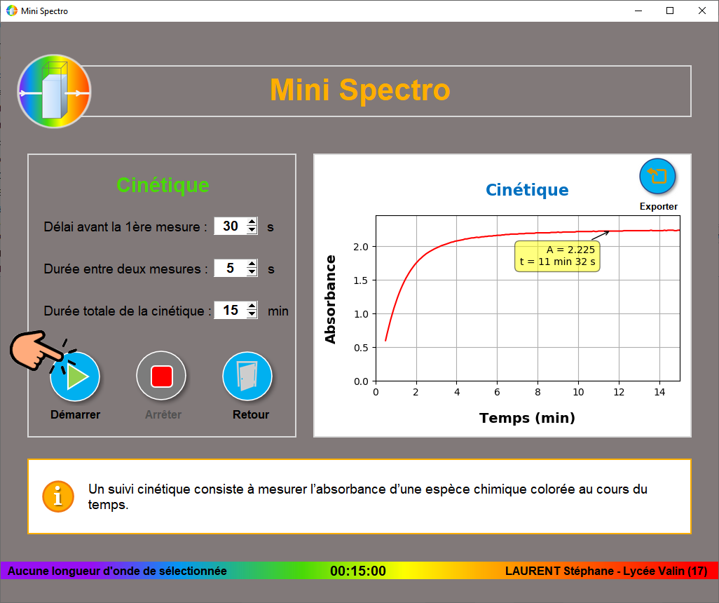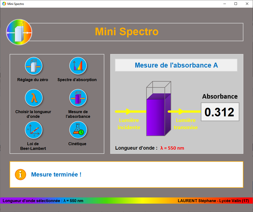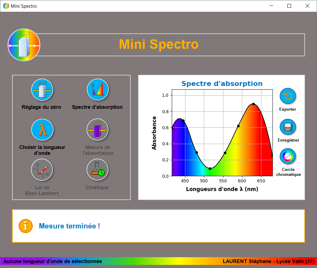 - Une interface graphique permet t'interagir avec ce mini spectro. Elle est très intuitive et permet ainsi une prise en main rapide par nos élèves.