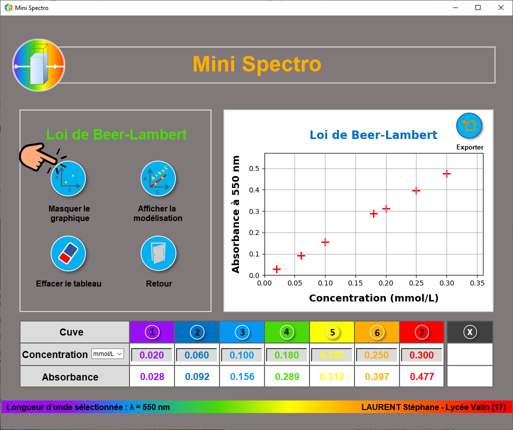 - Modification de la couleur de l'absorbance et de la concentration pour la cuve 5 dans Beer-Lambert.