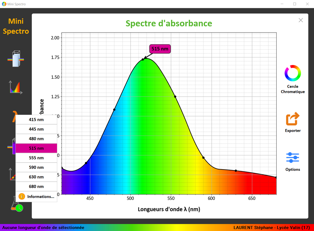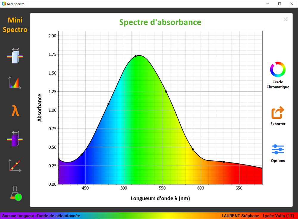 - d'enregistrer le spectre d'absorption au format, png, jpg, svg ou pdf;