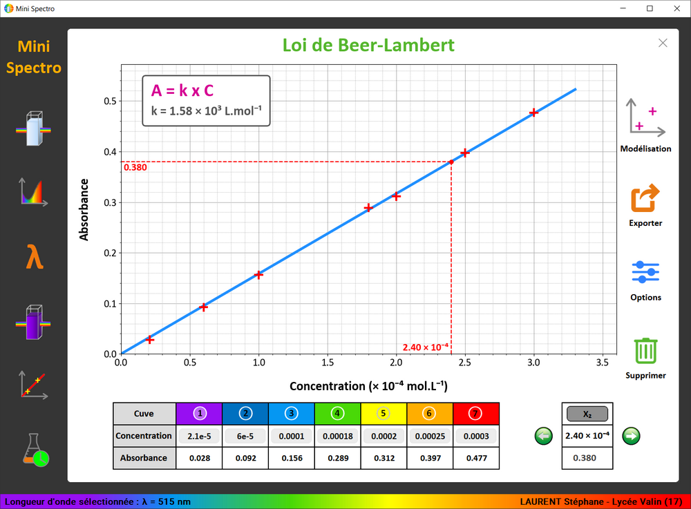 - Cliquez sur le bouton “Loi de Beer-Lambert“