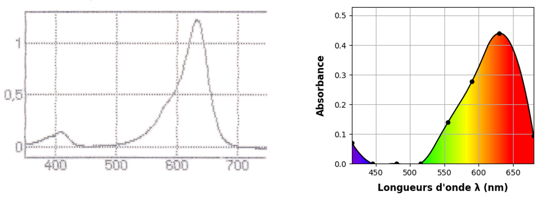 - Comparaison des spectres d’absorption d’une solution de permanganate de potassium obtenus à l’aide d’un spectrophotomètre de référence et du mini spectro.